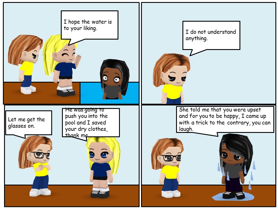 And finally, the times when a peronagem fell into the pool with clothes without being knocked over by another, that is, the person himself caused his fall, for fun and laughter of the other characters.